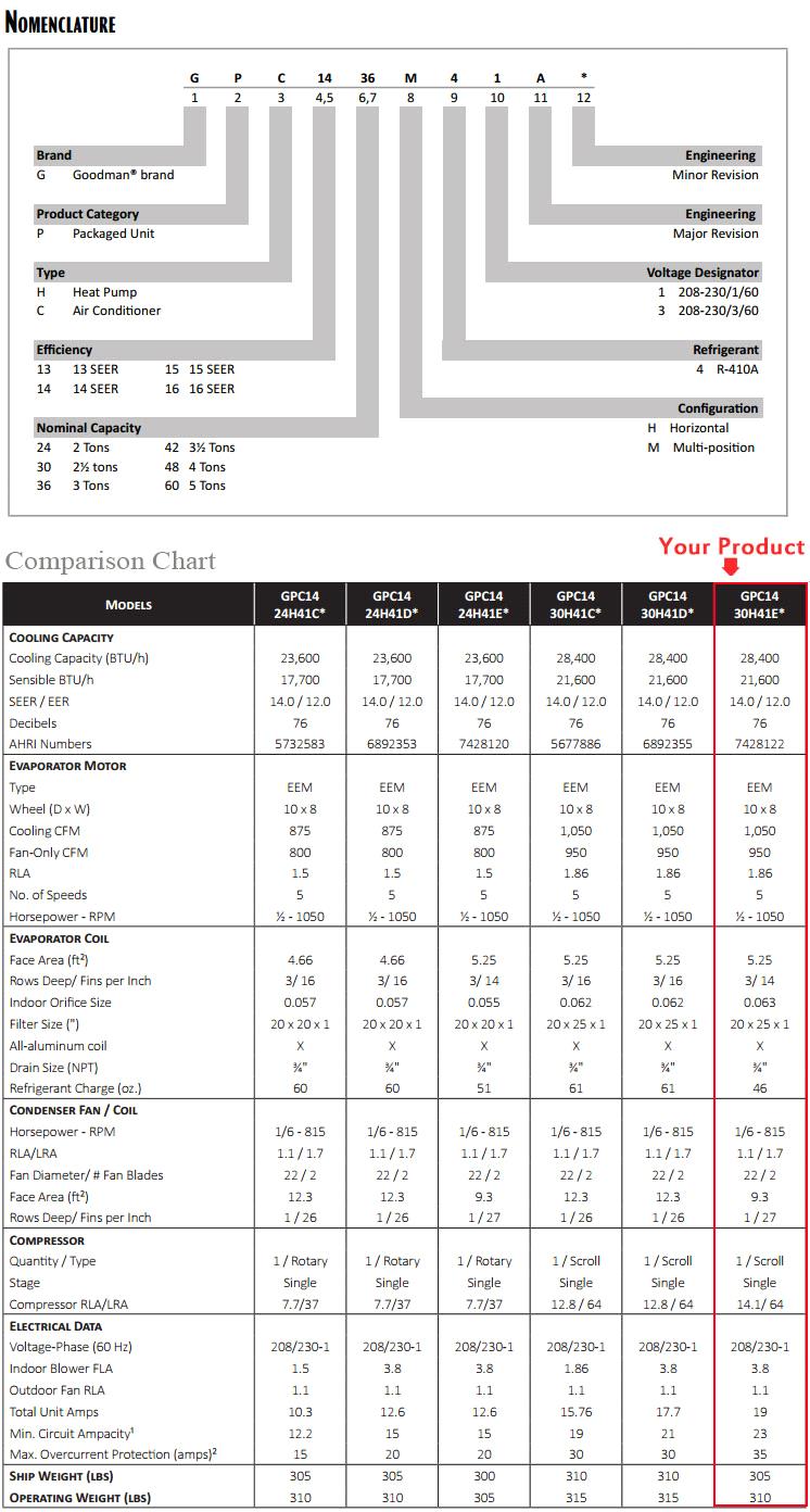 Brand: Goodman Save Listing| Email Listing | Share Product Name: 2.5 Ton Goodman GPC1430H41E SEER 14 Package Cooling Air Conditioner Item#: GPC1430H41E Availability: Discontinued, Please Email For Future Stock Availability. Choose QTY: 1 2 3 4 5 6 7 8 9 10 11 12 13 14 15 16 17 18 19 20 Required