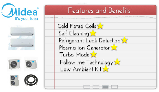 previousnextCompare & BuySingle Zone Split Air Units2 Room AC & Heating UnitsTri Zone Split Heat System4 Room AC & Heat Systems5 Room Ductless AC UnitsMixed Indoor Split Air UnitCeiling AC & Heat SystemsConcealed Duct Split AC UnitSuspended Split Heat SystemFloor AC & Heat SystemsMini Split HVAC By FeaturesSingle Zone Wall MountSingle Zone Wall Mount* All Inverter systems feature variable-speed compressor technology and can be controlled through a standard wireless remote or an optional wired wall controller Btu's - Brand Names - Several ChoicesSEERPriceDetails9000 Btu Midea 110V SEER 24.4 Wall Mount Air Conditioner Oasis Series Heat Pump CoolSEER:24.4 Feautres: Low Ambient Inverter Technology Type: Cool & Heat Indoor type: Wall mount Warranty: 7 Yrs Compressor + 5 Yrs Parts$1355.169000 Btu Midea 220V SEER 24.4 Wall Mount Air Conditioner Oasis Series Heat Pump CoolSEER:24.4 Feautres: Low Ambient Inverter Technology Type: Cool & Heat Indoor type: Wall mount Warranty: 7 Yrs Compressor + 5 Yrs Parts$100000.0018000 Btu Midea 220V SEER 21 Wall Mount Air Conditioner Oasis Series Heat Pump CoolSEER:24 Feautres: Low Ambient Inverter Technology Type: Cool & Heat Indoor type: Wall mount Warranty: 7 Yrs Compressor + 5 Yrs Parts$1571.8224000 Btu Midea 220V SEER 19 Wall Mount Air Conditioner Oasis Series Heat Pump CoolSEER:19 Feautres: Low Ambient Inverter Technology Type: Cool & Heat Indoor type: Wall mount Warranty: 7 Yrs Compressor + 5 Yrs Parts$1926.4828000 Btu Midea 220V SEER 18 Wall Mount Air Conditioner Oasis Series Heat Pump CoolSEER:18 Feautres: Low Ambient Inverter Technology Type: Cool & Heat Indoor type: Wall mount Warranty: 7 Yrs Compressor + 5 Yrs Parts$1827.12Ceiling Cassette UnitsConcealed Duct UnitsCeiling Floor UnitsDual ZoneTri ZoneQuad ZoneFive ZoneMidea Mix N Match See Options View All Options Single Zone Wall Mount Ceiling Cassette Units Concealed Duct Units Ceiling Floor Units Dual Zone Tri Zone Quad Zone Five Zone Midea Mix N Match